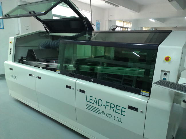 波峰焊接過程使用波形焊接機,如圖中所示。 這臺機器是一個獨立的烤箱,一端帶有放置元件的裸板,另一端提供完全焊接的電路板。 在這個開始和結束點之間有幾個過程,包括: